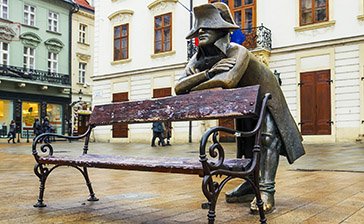 Bronzeskulpturen in der Altstadt: Eine Reihe exzentrischer Bronzestatuen in Form von Figuren auf den Straßen der Altstadt ist eine der am meist fotografierten Sehenswürdigkeiten von Bratislava. Die Skulpturen sind eine zarte und spielerische Hommage an die Gesichter und Geschichten der Stadt im Laufe der Zeit. Die Interessantesten konzentrieren sich auf die Gegend rund um den Hauptplatz. Verpassen Sie nicht den Schöne Náci, den höflichen Dandy mit Frack, Gehstock und Zylinder, der in der ersten Hälfte des 20. Jahrhunderts durch seine Anwesenheit in Cafés zu einer urbanen Legende wurde. Den legendären Čumil Rubberneck, einen Kanalarbeiter, der aus einem Straßenschacht kommt und Passanten anstarrt, oder Napoleons Soldat, der sich höflich vor einer Bank verbeugt, den berühmte Geschichtenerzähler Hans Christian Andersen auf dem Hviezdoslav-Platz, oder die Paparazzi, die hinter Straßenecken und Bäumen lauern …