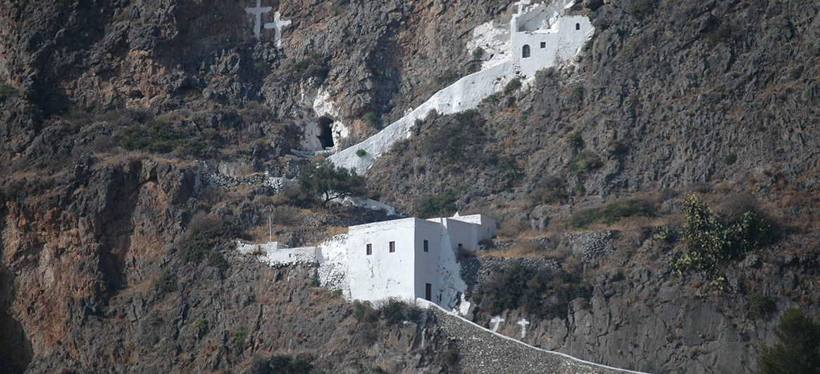 Palaiochora: Die Besichtigung der verlassenen Festungsstadt ist eine Reise durch die Zeit. Die alte Inselhauptstadt wurde am Rand der wilden Schlucht von Kakia Skala errichtet. Die Bewohner verließen die Stadt, nachdem sie 1537 vom Piraten Haiderin Barbarossa zerstört wurde. Gebäuderuinen und Fragmente von Kirchenwandmalereien sind bis heute erkennbar.