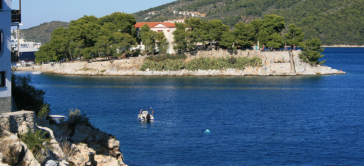 Kastro (Festung): Kastro ist eine häufige Szenerie in den Erzählungen von Papadiamantis und war bis 1830 Hauptstadt von Skiathos. Die Festung hängt buchstäblich an einem Felsen im äußersten Norden der Insel. Die Ruinenfestungsstadt wird auf das 14. Jh. datiert, als innerhalb der Festungsmauern über 300 Häuser und 30 Kirchen standen. Heute sind nur drei Kirchen erhalten: Christuskirche, Agios Nikolaos und Agia Marina. Sie erreichen Kastro nach einem zauberhaften 700-Meter-Spaziergang. Auf der Spitze des Hügels haben Sie einen einzigartigen Blick auf die Ägäis.
