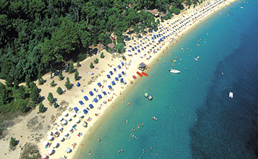 Strände: Die kleine Insel Skiathos der Nordsporaden zählt mehr als 60 Strände, die sämtlich wunderschön sind. Sie erreichen die meisten Strände über die Straße, es gibt aber auch einige, z.B. der berühmte Strand Lalaria, die Sie nur mit einem Boot erreichen können. Wenn Sie von Chora zum berühmten, oft fotografierten Strand Koukounaria gehen, wo der Wald fast bis ans Wasser reicht, werden Sie an mindestens acht weiteren Stränden vorbeikommen, wovon einige bewacht sind und sich für Wassersport eignen, etwa Tzaneria, Agia Paraskewi, Vromolimnos u.a. Im Westen können Sie an den Stränden Banana und Agia Eleni den schönsten Sonnenuntergang auf der Insel genießen. Im Norden der Insel finden sich viele einsame Strände: Kastro, Xanemos, Mandraki (auch Limani tou Xerxi, weil hier Xerxes Feldzug nach Artemisio gestartet sein soll), Elia, Kechria, Limenaria, Megalos Gialos, Mikros Aselinos und Megalos Aselinos (auch Agistros)